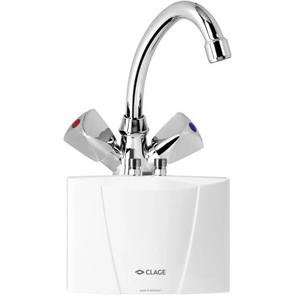 Der drucklose E-Kleindurchlauferhitzer M3/SNM von Clage wird als Komplett-Set mit passender Zweigriff-Mischbatterie zur Untertischinstallation geliefert. Preiswert und schnell installiert, spart das Gerät kostbaren Bereitschaftsstrom. Die Heizleistung schaltet sich automatisch ein, sobald Wasser durch das Gerät strömt. Eine neue Strömungstechnik sorgt für einen optimalen Wasserstrahl bei sparsamen Wasserverbrauch. Er ist besonders für Gäste-WCs, Sanitärräume in Büros, Läden, Gaststätten und Praxen geeignet.