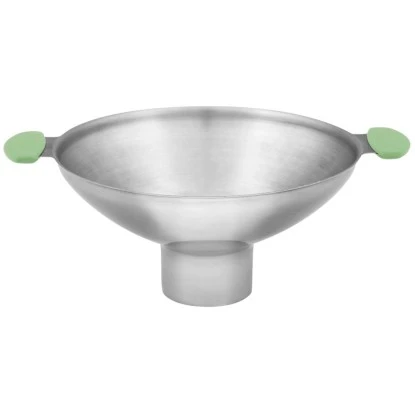 Der graue Einmachtrichter von Dr. Oetker besteht aus Edelstahl mit Griffen aus Kunststoff. Die extra breite Öffnung ist ideal geeignet zum Einmachen und Abfüllen von Marmeladen. Zudem ist er spülmaschinengeeignet.