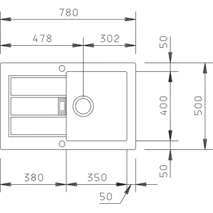 Arbeitsplattenausschnitt: 76 cm x 48 cm
