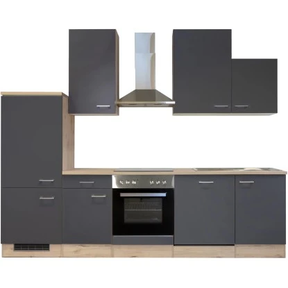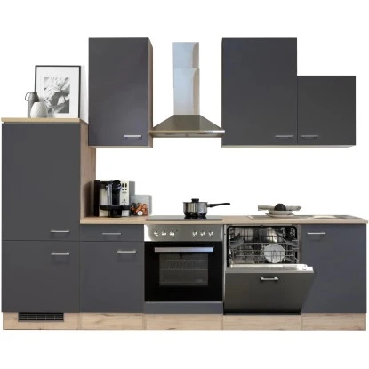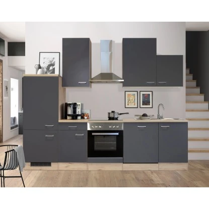 Die 280 cm breite Küchenzeile (B x H x T) besteht aus: