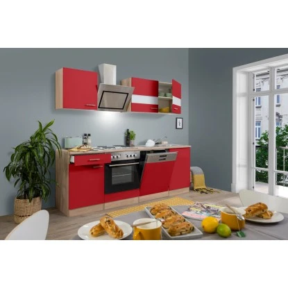 Respekta Economy Küchenzeile KB220ESRS 220 Cm Rot-Eiche Sägerau