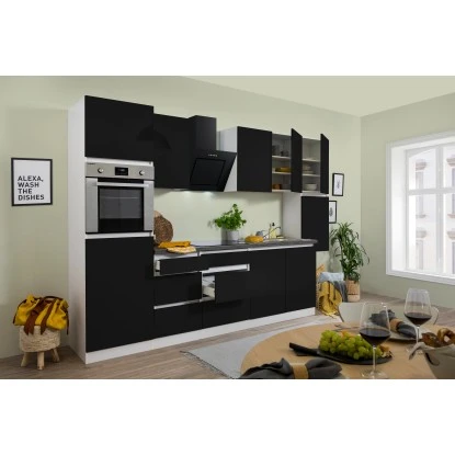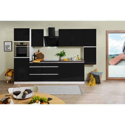 Respekta Küchenzeile GLRP320HWS Grifflos 320 Cm Schwarz Hochglanz-Weiß