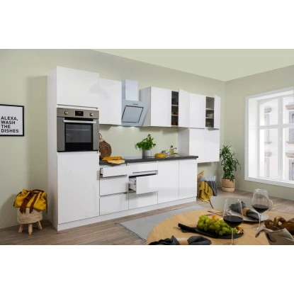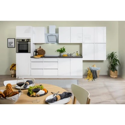 Sie wollen Ihrer Küche zu neuem Glanz verhelfen, haben aber erst kürzlich neue Elektrogeräte gekauft oder finden einfach nicht die richtige Küchenzeile mit bereits integrierten Elektrogeräten? Dann ist die grifflose Respekta Premium Küchenzeile ohne E-Geräte LBGLRP370HWW genau das Richtige für Sie. Die weißen Hochglanzfronten des Leerblocks verleihen Ihrer Küche ein modernes Design und zudem wirkt Ihre Küche durch die grifflosen Fronten ruhig und elegant. Die geräumigen Schränke sorgen mit einer komfortablen Soft-Close Funktion in dieser perfekt abgerundeten Küchenzeile für vielfältige Stauraummöglichkeiten für Vorräte und Küchenutensilien.