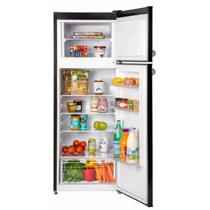 Die Respekta Kühl-/Gefrierkombination KS144 Vintage VC in Schwarz überzeugt vor allem durch ihre Funktionalität. Das Gerät besitzt neben einem Kühlinhalt von 171 Litern einen Nutzinhalt des Gefrierfachs von 42 Litern. Somit finden nicht nur Ihre frischen Lebensmittel und Getränke genügend Platz, sondern auch Vorräte, die tiefgefroren sind. Zusätzlicher Komfort wird durch verstellbare Füße, einen Türanschlag, LED-Beleuchtung im Kühlraum oder auch dem automatischen Abtauverfahren im Kühlteil erreicht.