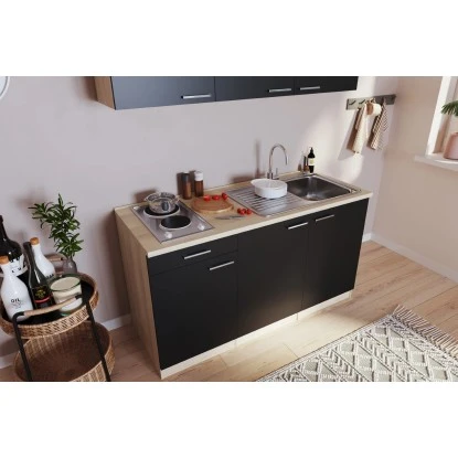 Respekta Singleküche Luis 150 Cm Schwarz-Eiche Sägerau