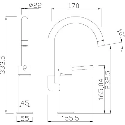 Ausladung Auslauf: 170 mm