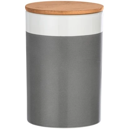 Die attraktive Vorratsdose von Wenko bringt Stil und Ordnung in jede Küche, jedes Wohn- und Badezimmer. Sobald Tüten und Verpackungen mit Lebensmittel angebrochen und nicht sofort aufgebraucht werden, eignen sich diese Aufbewahrungsdosen als unverzichtbare Küchenhelfer. Die Frischhaltedosen ist aus hochwertiger Keramik gefertigt und mit einem robusten Deckel aus nachhaltigem Bambus versehen. Das trendige Farbblockdesign aus Grau/Weiß ist ein Must-Have der Saison und ein Blickfang im gesamten Haushalt. Der lebensmittelechte Vorratsbehälter schließt dank seines speziellen Deckels luftdicht und aromafrisch. So bleiben Lebensmittel länger frisch. Ob im Küchenschrank oder im Regal, die praktischen Boxen machen überall eine gute Figur. Bewahren Sie Müsli, Reis, Nudeln, Salz oder Mehl und Kaffee aromafrisch auf. Ohne Deckel sind die Aromaboxen spülmaschinengeeignet. Vielseitig einsetzbar setzt die Dosen von Wenko auch auf dem Esstisch und im Wohnzimmer attraktive Akzente, egal ob für Kekse, Zucker oder als Dekoration und Blumenvase. Im Badezimmer verwahren die ausgefallenen Boxen Accessoires, Schmuck, Kosmetik, Haarbänder und Wattestäbchen sicher auf und versprühen ein modernes Ambiente.