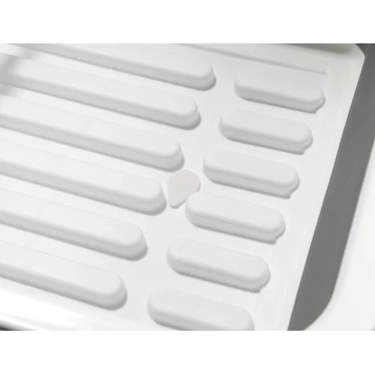 Das praktische Geschirrabtropfgestell aus flexiblem Silikon bietet mit seiner großen Ablagefläche viel Platz für Teller, Tassen, Messer und Gabeln. Da es auch im Zeitalter der Spülmaschine immer noch Geschirr und Besteck gibt, das besser von Hand gespült werden sollte, dient der Abtropfständer als funktionelles Zubehör für die Spüle in Küche, Gartenhaus oder Wohnmobil. Der Geschirrabtropfer ist rutsch- und kratzfest und bietet einen sicheren Stellplatz für Teller, Tassen und eine separate Vorrichtung für das Besteck. Der ausziehbare Ablauf vereinfacht das Abgießen von Wasser und erleichtert die Reinigung. Dabei bleibt die Arbeitsplatte stets trocken.
